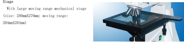▲ With large move range mechanical stages, can move quickly and slowly.▲ Coaxial coarse/fine focus system, with tension adjustable and up stop, minimum division of fine focusing: 0.7μm.▲ 6V 30W halogen lamp, adjustable brightness.