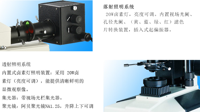 L2020透反射(双色)正置金相显微镜配置透反射照明系统,长距平场消色差物镜(无盖玻片)、大视野目镜和内置偏光观察装置,光学系统成像清晰,视野广阔,适用于工矿企业,高等院校及科研等机构作材料内部组织结构观察。性能特点